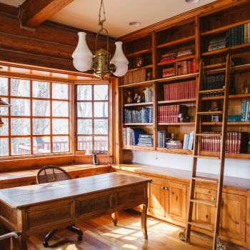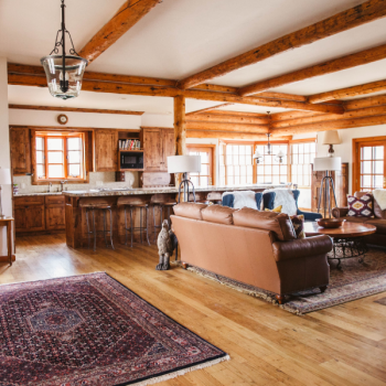 The main home sleeps up to 10 guests in the winter and up to 14 guests in the summer with the optional sod house (available May–September). Sleeping arrangements include a master bedroom with a king bed and queen sleeper, an upstairs bedroom with one queen bed, another upstairs bedroom with two full beds, and a queen sleeper in the library. Bathrooms include a full master bath, an upstairs Jack-and-Jill full bath, and a downstairs half bath.