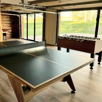 Inside, enjoy an open kitchen and living area with a gas/wood fireplace, in-floor heating, and plenty of natural light. The newly added garage game room includes foosball, shuffleboard, ping pong, a game table, and plenty of space for laying out gear. Wi-Fi and Roku TVs are available throughout the home.