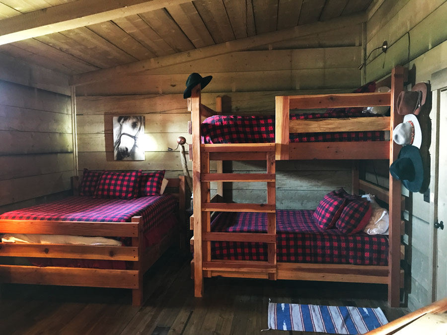 The Bunkhouse sleeps eight comfortably with a queen size bed, queen size bunk bed, and a queen size sleeper sofa. The living room has an L shaped sofa and a large TV with a Blueray/DVD player. There is also wifi/internet, gas heat and AC available.